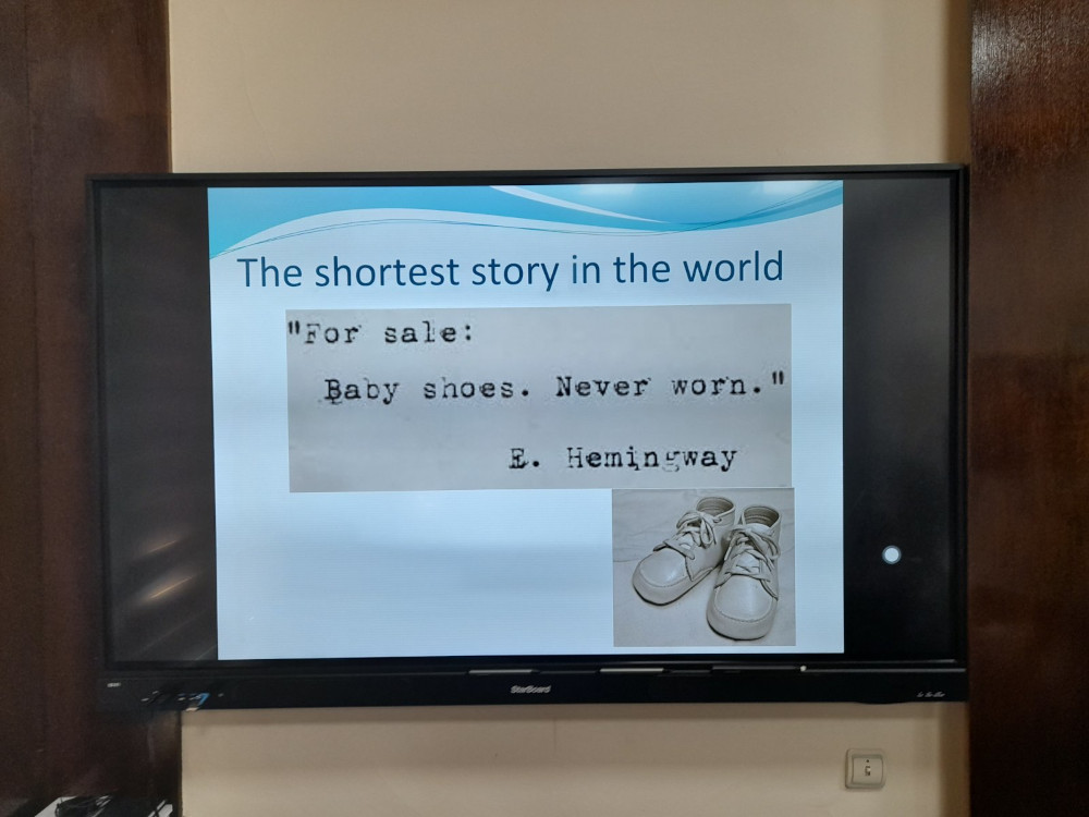 Један од централних тренутака радионице била је анализа Хемингвејеве биографије и његових дела. Упознајући се са његовим стилом, ученици су научили како су једноставност и сажетост кључни елементи у писању. Концепт „веома кратке приче“ (flash fiction) је додатно инспирисао учеснике, а као пример послужила им је и кратка прича: „Продајем: ципеле за бебе, никад ношене.“ Ова прича, иако веома кратка (састоји се само од 6 речи), поставља многа питања и омогућава читаоцима да замишљају причу која се крије иза тих речи.