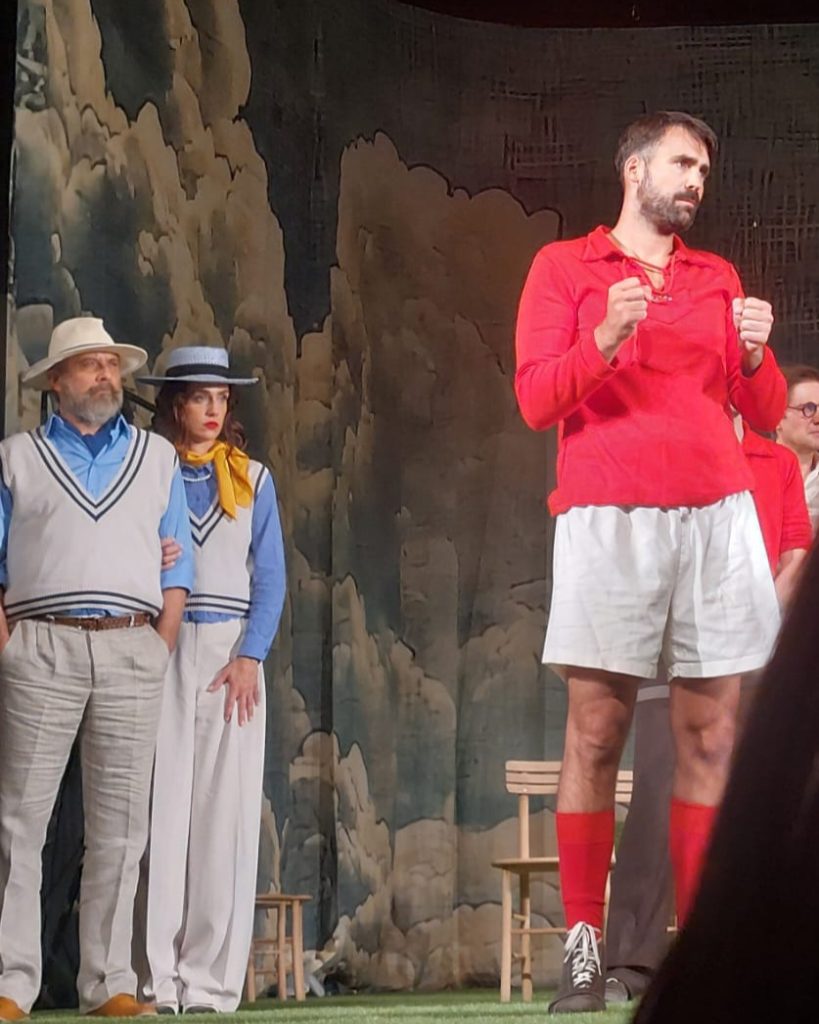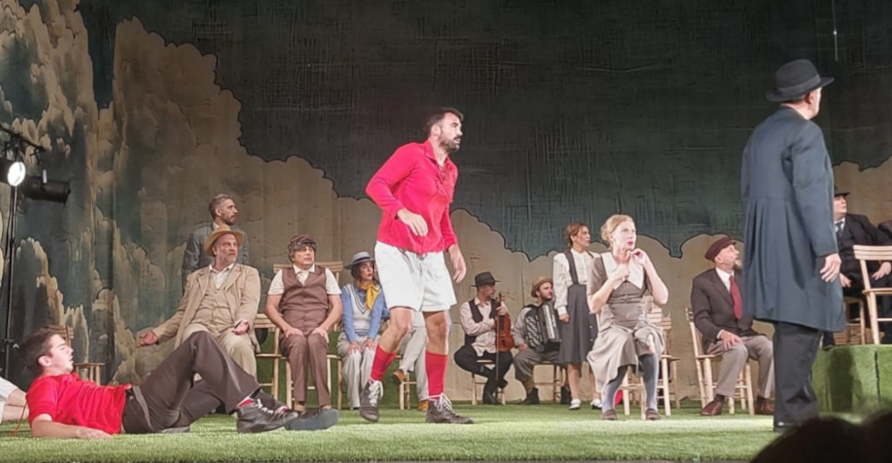 Фудбал, који је у наслову само „игра“, у представи добија дубљи смисао. Он постаје метафора опстанка, начин да се живи, дише и на тренутак побегне од сурове стварности. Симболични детаљи оживљавају сцену: лопта на штапу, којом мајсторски управља Александар Јовановић, као да означава танку границу између контроле и хаоса.