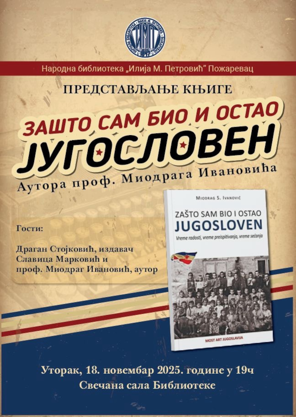 ПРЕДСТАВЉАЊЕ КЊИГЕ ,,ЗАШТО САМ БИО И ОСТАО ЈУГОСЛОВЕН“