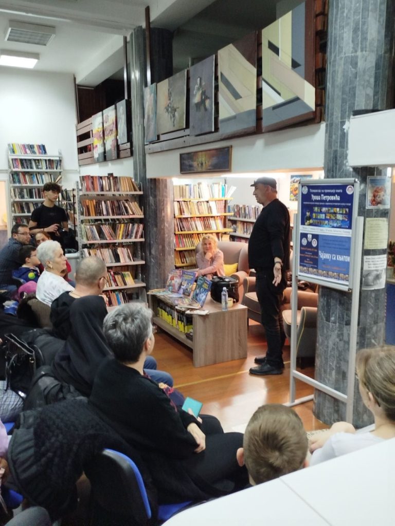 Познат по делима која спајају фантастику, логику и авантуру и подстичу читаоце на размишљање, Урош Петровић је у препуној сали Библиотеке у Костолцу привукао публику свих узраста: ученике, наставнике, родитеље, многобројне љубитеље књижевности и своје верне читаоце.