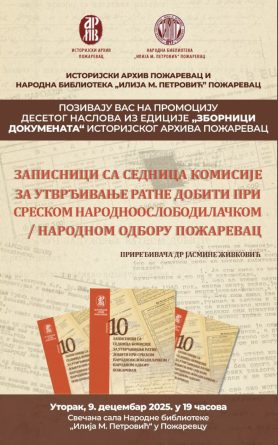 Најаве ПРЕДСТАВЉАЊЕ ДЕСЕТОГ НАСЛОВА ИЗ ЕДИЦИЈЕ ,,ЗБОРНИЦИ ДОКУМЕНАТА“ ИСТОРИЈСКОГ АРХИВА ПОЖАРЕВАЦ 4. децембра 2025. Dragana