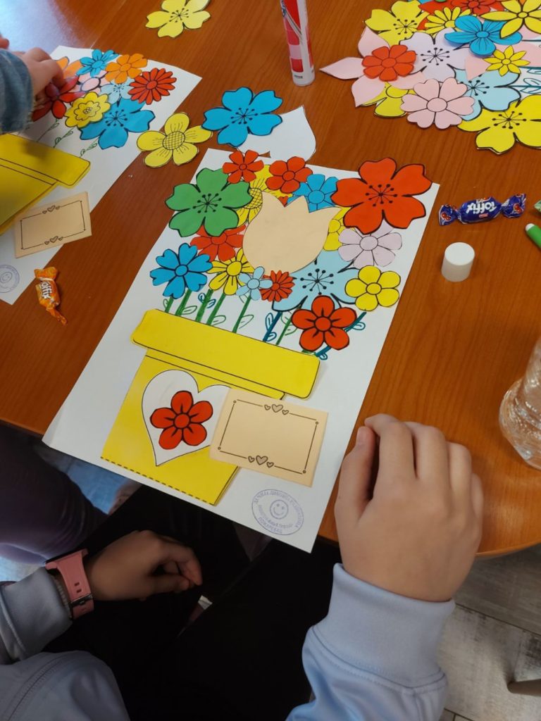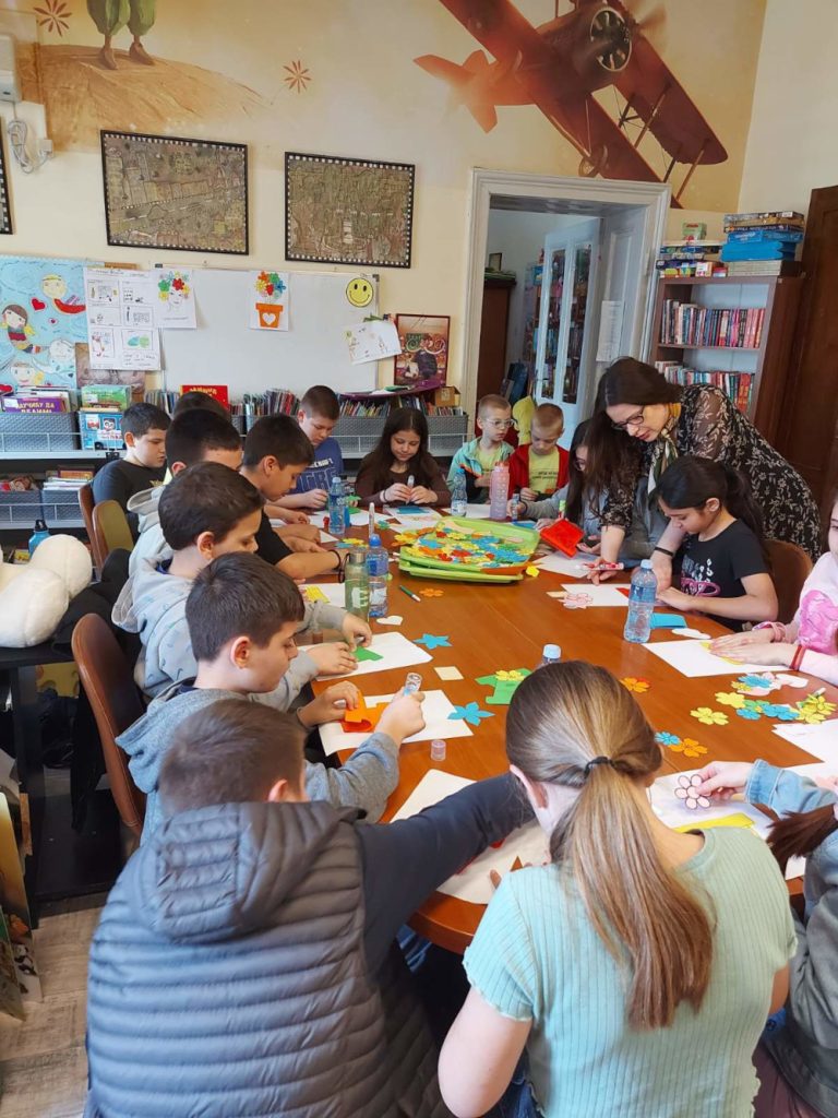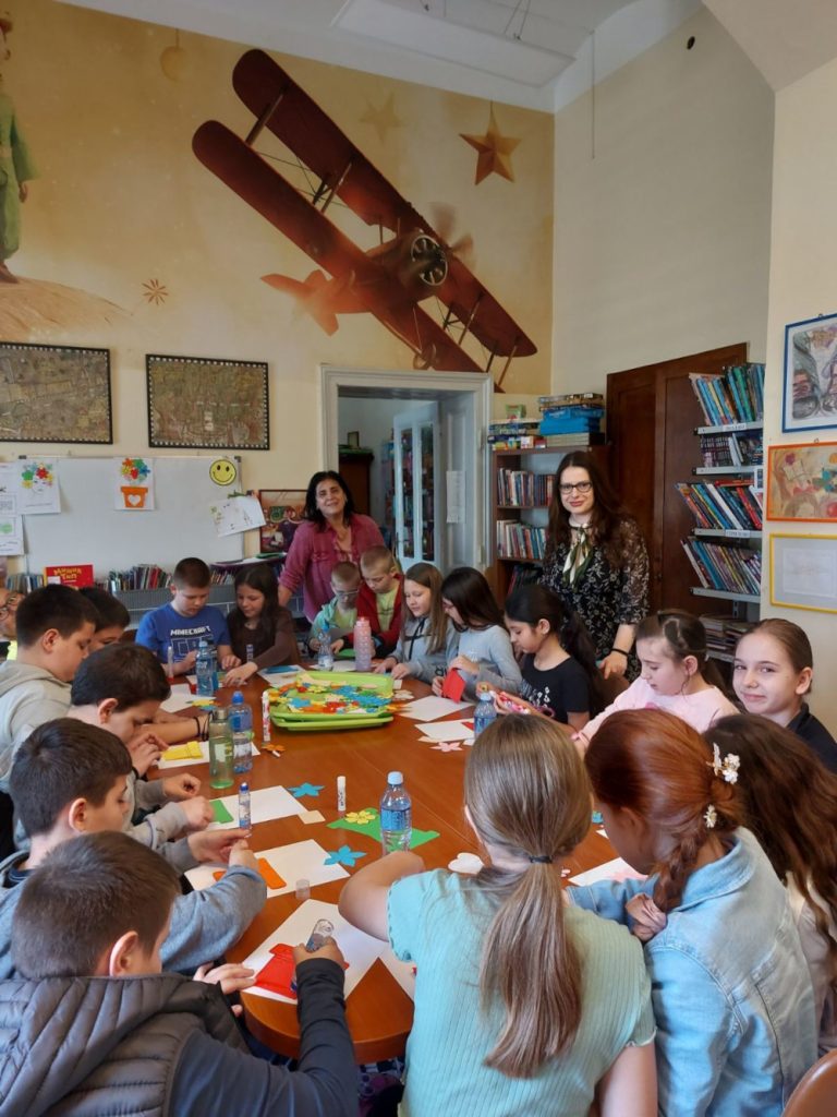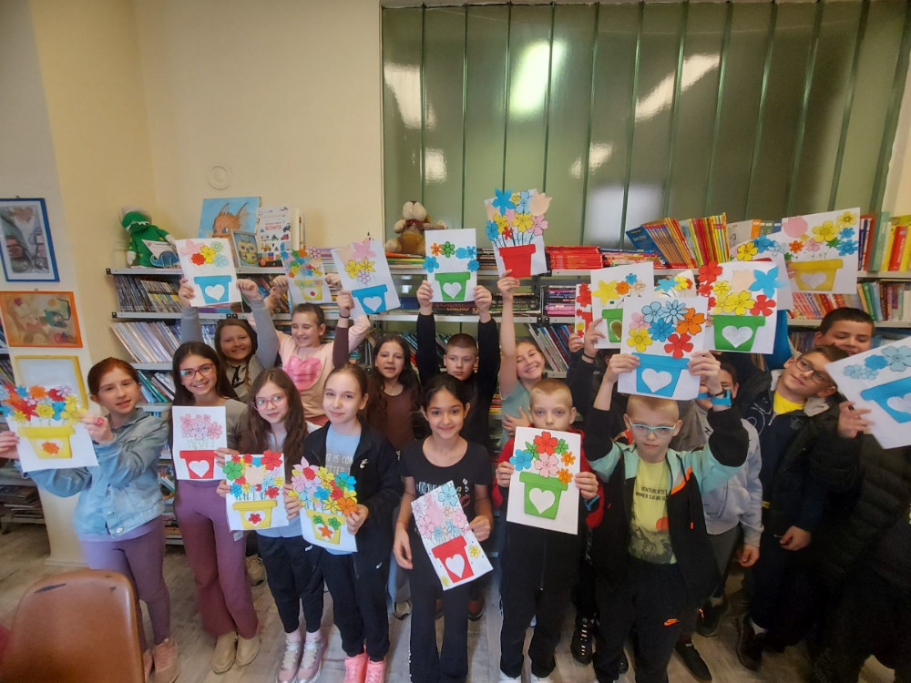 Предстојећи празник дао нам је повода да организујемо радионицу и за мало веће основце и да се позабавимо темама као што су права жена и борба за једнакост. Овога пута друштво су нам правили четвртаци Основне школе Краљ Александар I са учитељицом Виолетом Шалер, 5.марта. Први део радионице био је посвећен разговору о значају 8.марта и зашто се баш тај дан прославља као дан жена. Љиљана Јовић, историчарка уметности, на интересантан и пријемчив начин дочарала је клинцима како су Клара Цеткин и Роза Луксембург повеле на хиљаде жена и утрле пут еманципацији и равноправности. Ђаци су имали прилику да чују како су жене живеле кроз историју, чиме су смеле да се баве, шта им је било забрањено и да ли су имале једнаке плате као и мушкарци. Наравно, осврнули смо се и на велике жене наше историје попут неустрашиве Чучук Стане, наше суграђанке и сликарке Милене Павловић Барили, прве српске лекарке Драге Љочић, затим Ксеније Атанасијевић, прве жене доктора наука на нашем универзитету. Поменули смо и књижевнице Десанку Максимовић, Исидору Секулић, Светлану Велмар Јанковић… Отиснули смо се и у свет где смо се срели са Џејн Гудал, која је живот посветила истраживању мајмуна, летели смо са Амелијом Ерхарт и разговарали о малој црној хаљини Коко Шанел. Ученици су наводили и које то познате жене они знају, попут певачица, глумица, спортисткиња, а које остављају неизбрисив траг у свету. Након овог инспиративног разговара, други део радионице је био практичне природе и посвећен изради честитки за 8. март женама које су за њих лично најзначајније. Радионицу су водиле библиотекарке Александра Миленковић и Маја Маринковић Павловић. Док смо правили ове лепе успомене, сазнали смо коме је узор бака, кога је одгајила стрина, коме је мама највећи ослонац и чија тетка прави најлепше медењаке. Ове радознале четвртаке смо позвали да и убудуће буду наши гости и активно учествују у животу библиотеке.