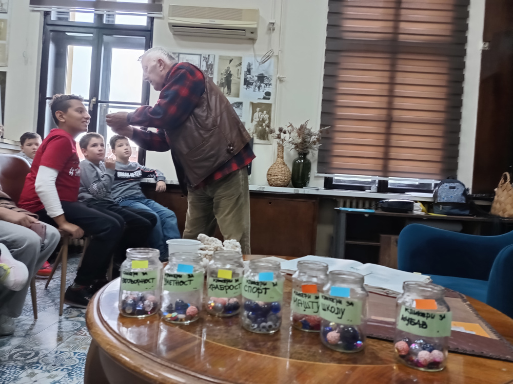 У понедељак, 6. октобра, у Свечаној сали одржана је радионица: „И ја кликер за машту имам” – дружење са песником. ПЕСМОКАЗ И ИГРОКАЗ за ученике разредне наставе, праве кликераше од главе до пете, припремили су и реалиозвали библиотекарка Ана Хранисављевић и песник Радиша Стојићевић. Идеја је настала захваљујући песми „Кликер” учитеља Радише, која нам открива неке универзалне поруке о лепоти дељења, другарства, одрастања. Вођена том идејом, библиотекарка Ана осмислила је икроказ уз помоћ кликера и теглица за складиштење маште, љубави, снова и многих других животних вредности, као и особина попут храбрости, одговорности, поштења и сл., којима се учимо у детињству и чувамо их током целог живота, трудећи се да се по њима владамо, руководимо и живимо.