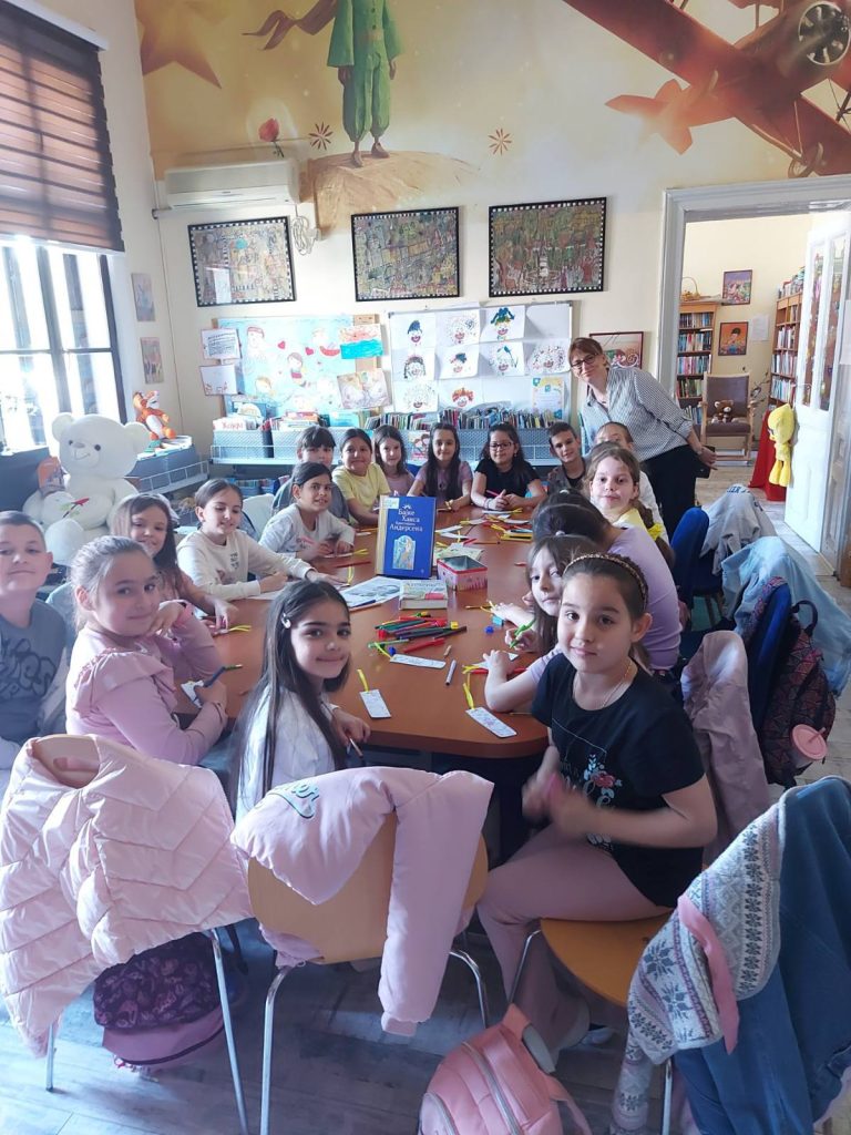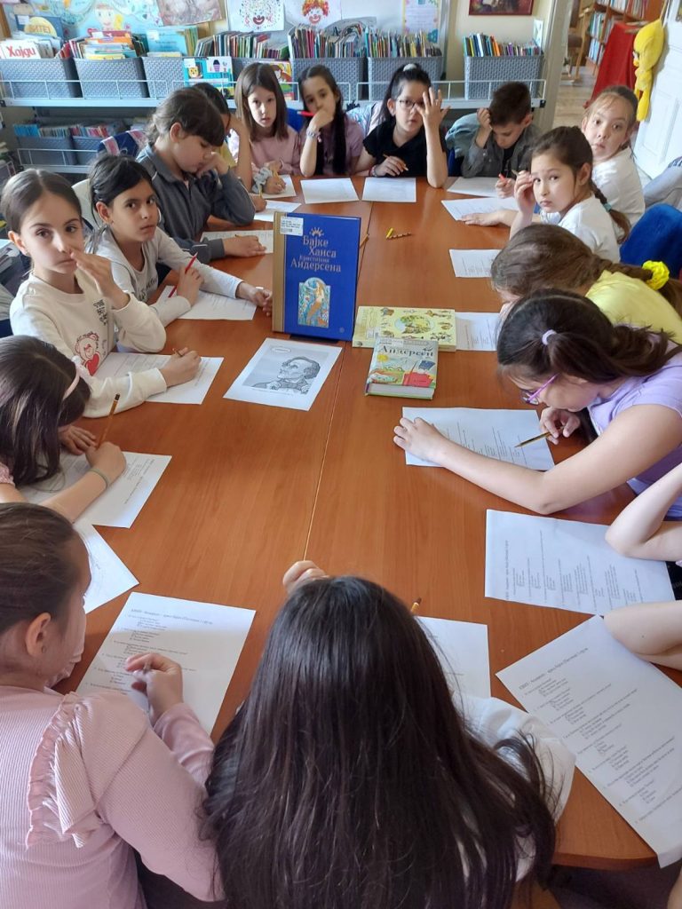 Поводом Светског дана књиге и ауторских права,  који се обележава 23. априла, Дечје одељење је организовало радионицу за ученике другог разреда ОШ ,,Свети Сава“ у пратњи учитељице Јасне Ђукић под називом ,,Андерсен – краљ бајки“. Ханс Кристијан Андерсен рођен је 2. априла 1805. у Данској и сматра се једним од највећих светских писаца за децу. Имао је врло инспиративан и трновит животни пут. Деца су сазнала да мали Ханс Кристијан није био нарочито леп те да је Ружно паче, чувена бајка о одбаченом лабуду, заправо прича његовог живота. Чули су за његову жељу да буде глумац. У тој намери, пут га наводи у Копенхаген, али уместо даски које живот значе постаје чувени писац бајки. У њима је налазио лепоту и смисао, водио борбу између добра и зла и славио љубав и племенитост. Од занимљивости које су малишанима привукле пажњу била је и та да је Андерсен био велики путник тог времена и да је посетио чак и Србију, пловио Дунавом и дивио се српским шумама. Библиотекарка Маја Маринковић Павловић је са децом поразговарала о бајкама као својеврсној књижевној врсти са којом се сусрећу од најранијих дана. Заједно смо открили шта је то карактеристично за бајке, како бајке почињу и како се завршавају, каква бића проналазимо у бајкама и чему нас оне уче. Потом је деци прочитана бајка Палчица. Добили су задатак да пажљиво слушају и обрате пажњу на детаље јер је у наставку следио квиз ,,Колико смо пажљиво слушали Палчицу?“ Малишани подељени у две групе одговарали су на питања о ликовима и фантастичним догађајима у бајци. Након квиза ђаци су добили јединствене обележиваче за књиге које су бојили и украшавали по сопственој жељи и који су им остали као успомена на данашње дружење. Након пажљивог бодовања, проглашена је победница квиза Нађа Станојловић, којој је библиотекарка Александра Миленковић доделила диплому и  награду – књигу Љубивоја Ршумовића ,,Три чвора на трепавици“. На самом крају дружења учесницима је уручена захвалница за учешће у радионици Андерсен – краљ бајки. Радионицу су осмислиле и водиле библиотекарке Александра Миленковић и Маја Маринковић Павловић.